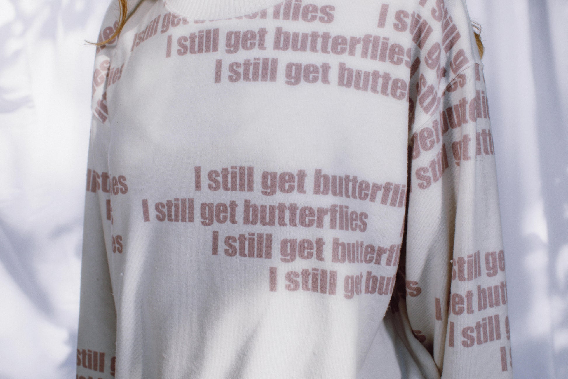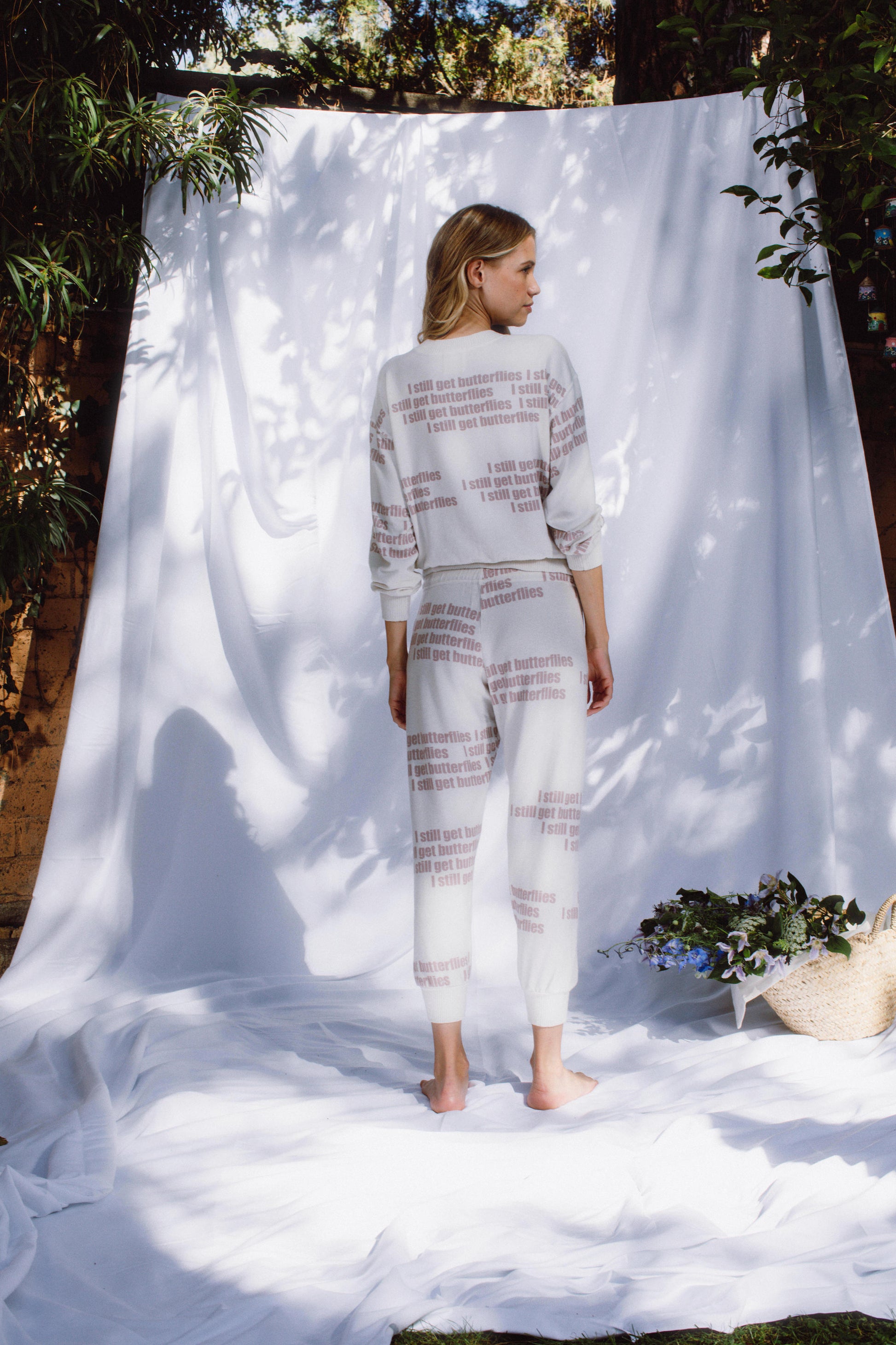 I Still Get Butterflies - Embrace comfort and romance with our "I Still Get Butterflies" lounge set. The soft lilac print of the sweet phrase captures cozy, nostalgic vibes, perfect for relaxing at home. With a gentle, romantic touch, this piece offers both warmth and style for those who love a little flutter in their everyday moments.